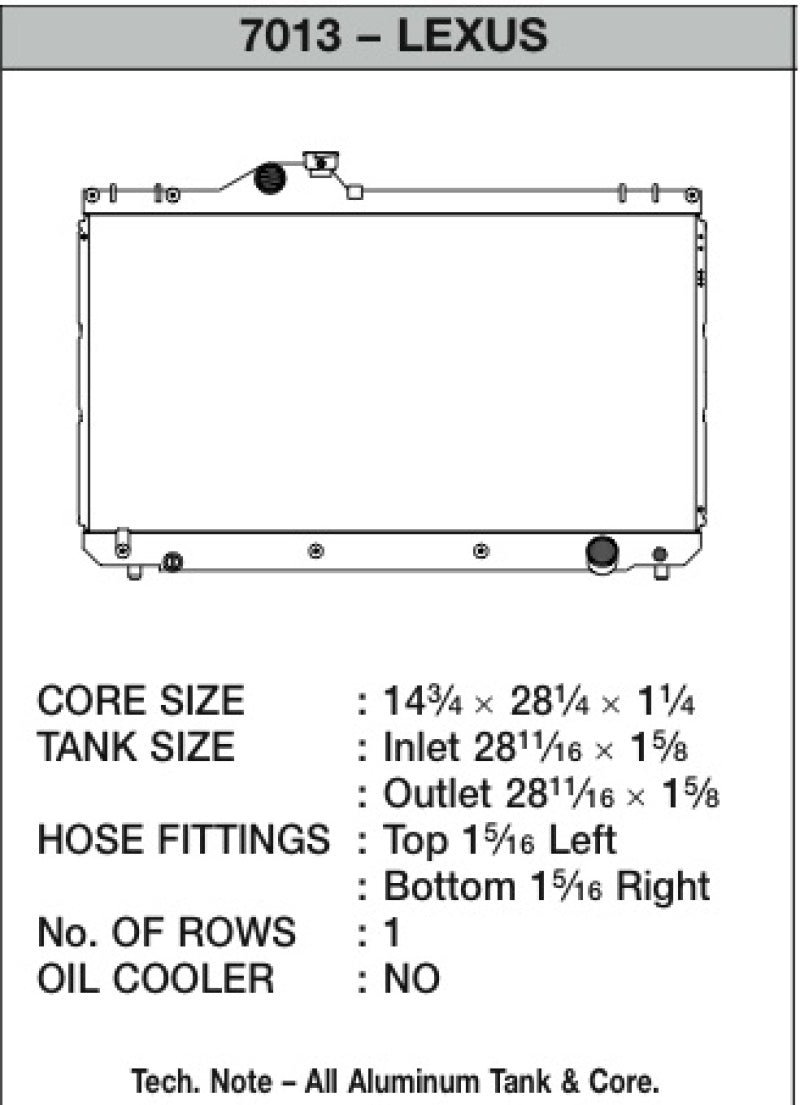 Get it all from CSF! With over 3000 models to chose from, CSF's coverage is second to none.When you choose CSF, you are dealing directly with the manufacturer, not a broker or an importer. CSF's factories are ISO certified, and are OE suppliers to many US, German and Asian manufacturers. When you purchase a CSF product, you can be rest assured that it has been manufactured on the same production lines with the same high quality standards as their OE customers. Every single radiator is subject to rigorous testing procedures such as Hydrostatic Testing, Vacuum decaying and life cycle testing, and is designed to always be a "drop-in fit".