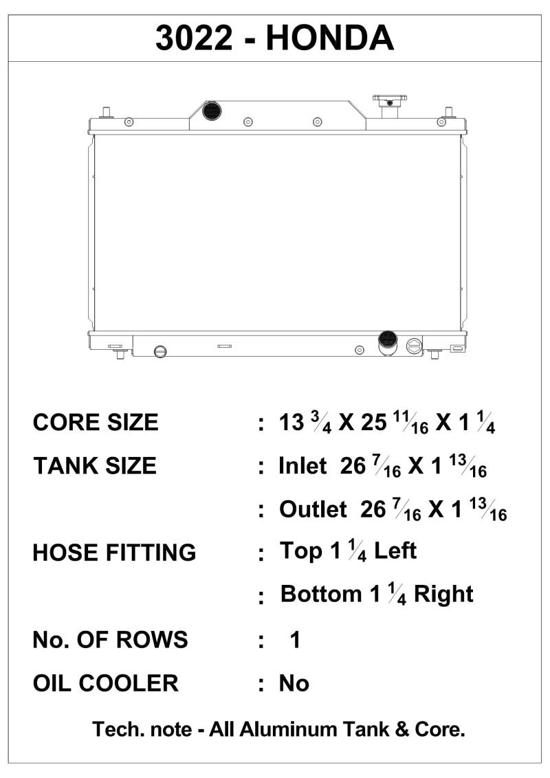 Get it all from CSF! With over 3000 models to chose from, CSF's coverage is second to none.When you choose CSF, you are dealing directly with the manufacturer, not a broker or an importer. CSF's factories are ISO certified, and are OE suppliers to many US, German and Asian manufacturers. When you purchase a CSF product, you can be rest assured that it has been manufactured on the same production lines with the same high quality standards as their OE customers. Every single radiator is subject to rigorous testing procedures such as Hydrostatic Testing, Vacuum decaying and life cycle testing, and is designed to always be a "drop-in fit".