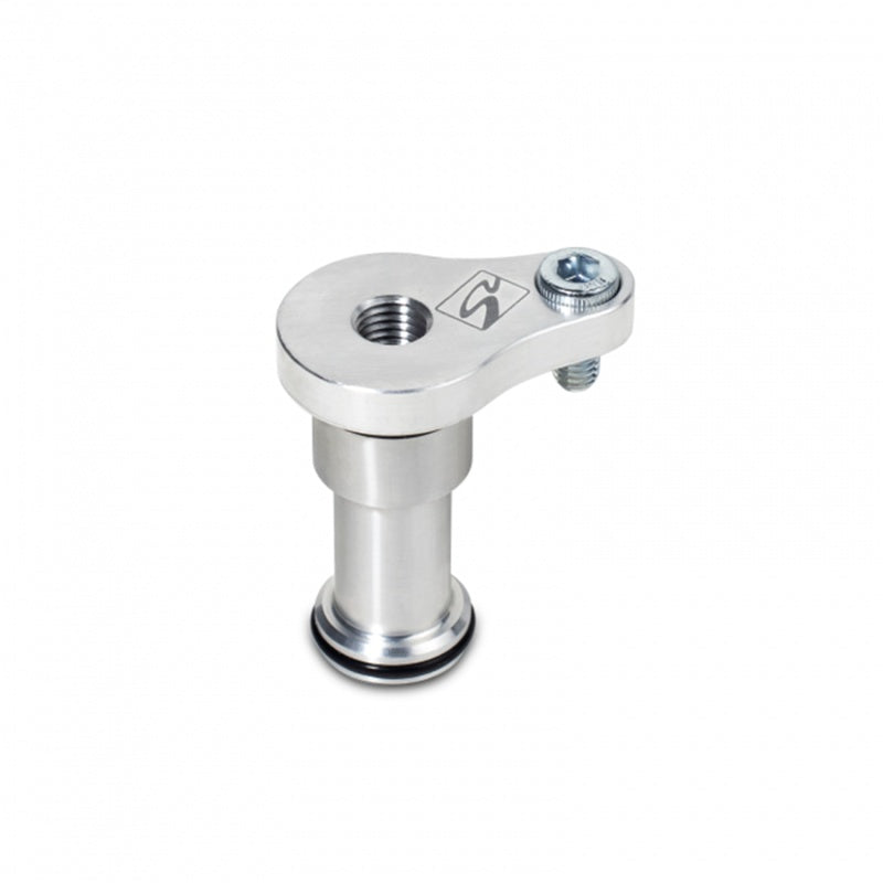 The Skunk2 Racing VTC Solenoid Delete is CNC machined from 6061 billet aluminum and replaces the OEM VTC solenoid on K20 and K24 K Series engines that have replaced the OEM hydraulic intake cam gear for a mechanically adjustable Skunk2 race intake cam gear. The Skunk2 VTC Delete has a double o-ring design and a helpful M6 x 1.0 threaded hole to aid in the removal of the delete when needed.