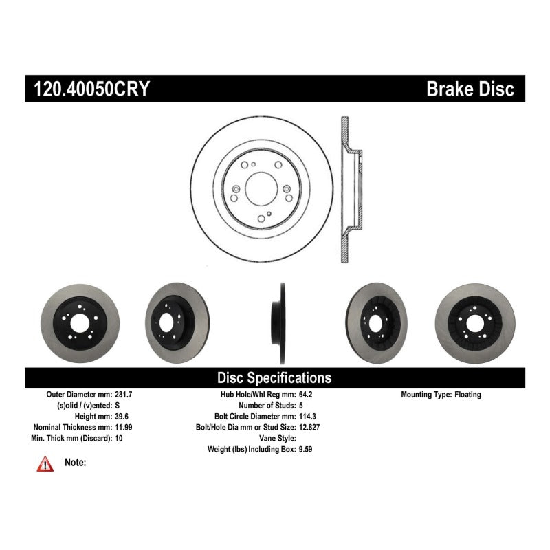 Stoptech 00-09 Honda S 2000 Rear Performance Cryo Rotor