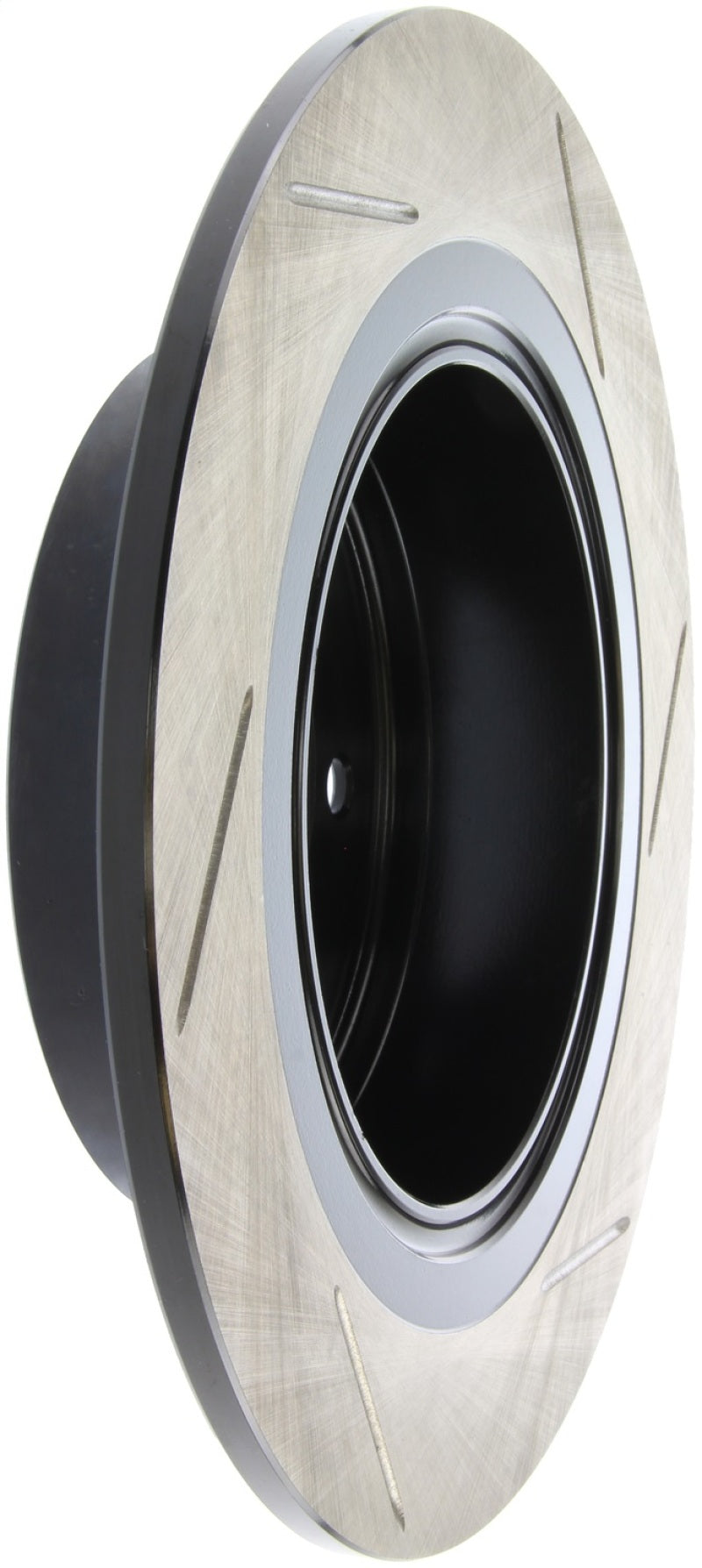 StopTech Slotted Sport Rotors are 1-piece direct replacement brake discs for factory brake systems and stock calipers that look great behind your wheels – and offer significantly improved braking performance. The unique slotting aids with heat and brake dust dispersal, prevents glazing of the pads, adds bite and improves wet and dry braking performance. Built to last, the black e-coating provides protection from corrosion and the high carbon metallurgy (in most applications) offers quieter operation, better crack resistance and increased performance.