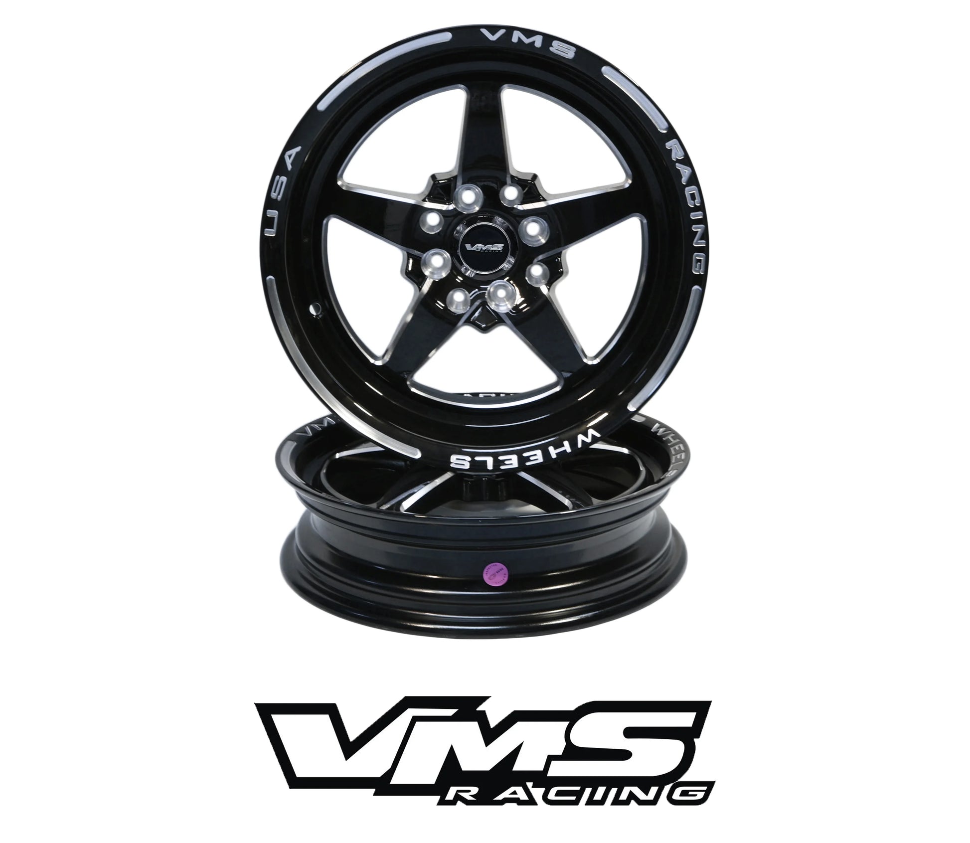 VMS Racing Drag Race Race V-Star 15X3.5" wheel is currently only available in black milling. Can be used on certain vehicles as a front drag wheel too.